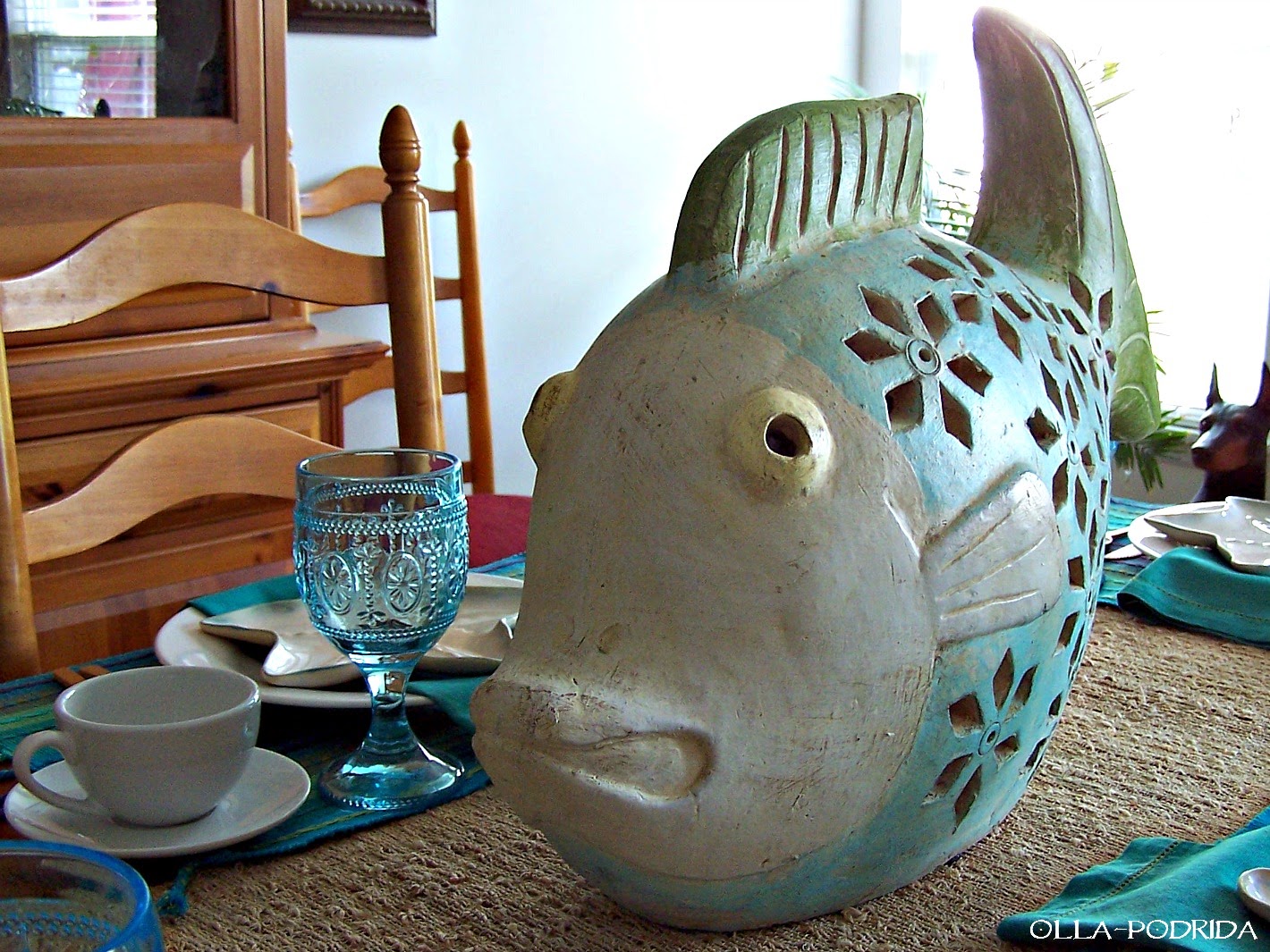 That fish would have swum home with me too Pattie, it is just fabulous! I have those mats in a red version, but I sure love your blue and green ones. Turquoise is my very favorite color, it amazes me how versatile it is! Great summer table, I love it all!